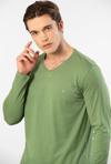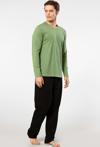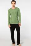 V yaka, logo nakışlı uzun kollu pijama takımı. Modal-pamuk karışımı materyal, nefes alabilirlik