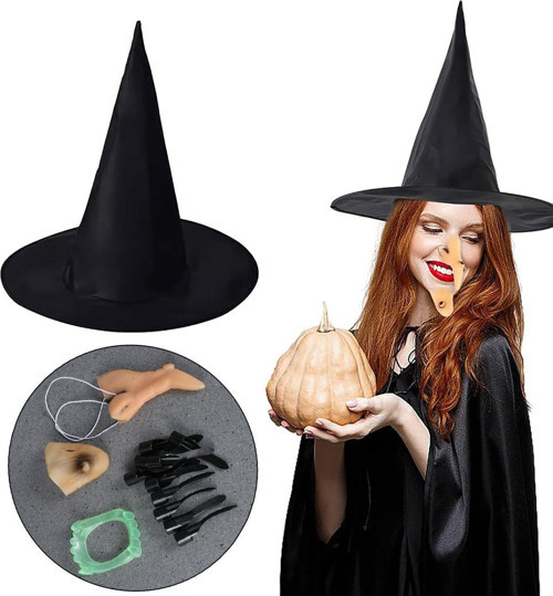 CADI KOSTÜM SETİ - CADI ŞAPKASI, CADI TIRNAKLARI, CADI BURNU, CADI ÇENESİ, CADI DİŞİÜrün ÖzellikleriCadı kostüm seti, korku temalı partiler, cadılar bayramı kutlamaları ve özel etkinliklerde etkileyici bir görünüm sunmak için hazırlanmıştır. Set içerisinde yer alan uzun ve sivri cadı şapkası, ürkütücü cadı tırnakları, gerçekçi görünümlü cadı burnu, cadı çenesi ve cadı dişi sayesinde tam bir karakter bütünlüğü sağlar.Kaliteli malzemelerden üretilmiş olan bu aksesuarlar, hafif ve rahat kullanımıyla uzun süreli etkinliklerde bile konforlu bir deneyim yaşatır. Kostümünüzü tamamlamak için ihtiyacınız olan tüm detayları bir araya getiren bu set, hem yetişkinler hem de gençler için uygundur.Paket İçeriği1 adet cadı şapkası1 set cadı tırnağı1 adet cadı burnu1 adet cadı çenesi1 adet cadı dişi