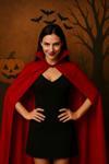 Cadılar Bayramı, kostüm partileri ve fotoğraf çekimleri için pratik, hafif ve şık bir set. Kısa ve dik duran yakalı kırmızı pelerin ile başta dengeli duran 6 küçük yarasalı taç, birlikte kullanıldığında modern vampir görünümünü tamamlar. Modeldeki gibi aydınlık bir görünüm için idealdir.