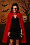 Toyfest Cadılar Bayramı Kırmızı Yakalı Pelerin & Yarasalı Siyah Tüylü Taç Seti – Şeytani Vampir Kostüm Seti