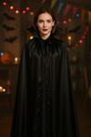 120 cm Siyah Yakal Pelerin: Kaliteli parlak kumaştan üretilmiş, yakaları kısa ve dik şekilde tasarlanmış özel pelerin. Kolları kapatacak şekilde tasarımıyla ürünü daha gizemli hale getirir.