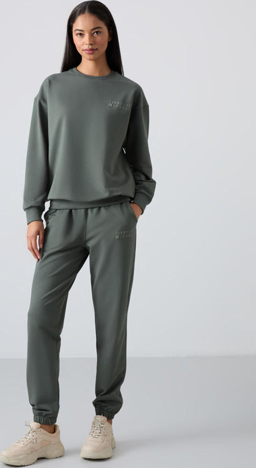 Tommy Life Çağla Basic Pamuklu O Yaka Oversize Lastik Paça Kadın Eşofman Takım - 95287