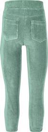 Çağla Yeşil Kız Çocuk Sahte Cepli Fitilli Kadife Tayt