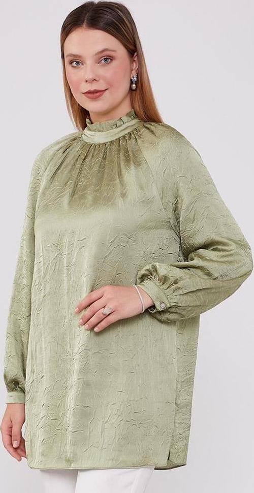 Levidor Çağla Yeşili Yakası Büzgülü Kraş Saten Bluz