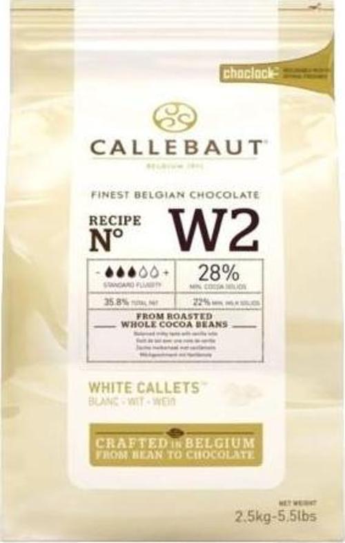 Callebaut Beyaz Damla Kuvertür Çikolata 2,5 kg, pastalarda, kurabiyelerde, keklerde, ganajlarda, soslarda ve diğer tatlılarda kullanılabilen premium bir Belçika beyaz çikolatasıdır. Yoğun ve kremsi dokusu, vanilya aroması ve yüksek kakao içeriği ile öne çıkan bu ürün, tatlılarınıza gurme bir lezzet katacaktır.