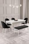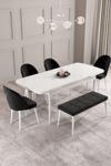 Calvin Beyaz 80x132 Açılabilir Mdf Masa Yemek Odası Takımı, Mutfak Takımı 4 Sandalye, 1 Bench