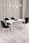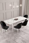 Calvin Beyaz Mermer 80x132 Açılabilir Mdf Masa Yemek Odası Takımı, Mutfak Takımı 4 Adet Sandalye