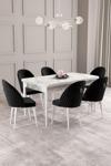 Asaella Mobilya Calvin Beyaz Mermer Desen 80x132 Açılabilir Mdf Masa Yemek Odası Takımı, Mutfak Takımı 6 Adet