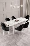 Calvin Beyaz Mermer Desen 80x132 Açılabilir Mdf Masa Yemek Odası Takımı, Mutfak Takımı 6 Adet Sandalye
