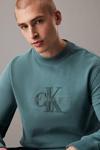 Calvin Klein Erkek Üstleri. Moda kategorisi: Kardiganlar ve Kazaklar. Ürün Kodu: J30J326144CH2. Renk: North Atlantic. Calvin Klein Şönil Monogram Sweatshirt. Pamuklu havlu kumaştan üretilen bu sweatshirt, normal kesim, yuvarlak yaka ve nervürlü yaka, manşetler ve etek ucuna sahiptir. Yumuşak şeftali rengi bir yüzeye sahiptir ve göğüste Calvin Klein şönil logo aplikesi ile tamamlanmıştır. %100 pamuk. Portekiz'de üretilmiştir.