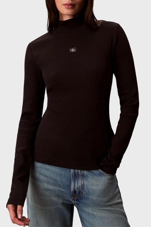 Calvin Klein Jeans Dokuma Etiketli Uzun Kollu Boğazlı Kadın Siyah Gömlek LV047D203G-UB1