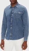 Calvin Klein Jeans Erkek Günlük Klasik Mavi Gömlek LV040EM774-WHZ
