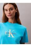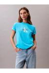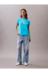 Calvin Klein Kadın Normal Kalıp Yuvarlak Yakalı %100 Pamuk Ck Logo Baskılı Kısa Kollu Mavi T-Shirt Lv047B865G-Xf7