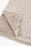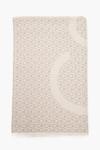 Detaylar: Kısa püsküllü uçlar, tüm yüzeyi kaplayan Calvin Klein logosu deseni