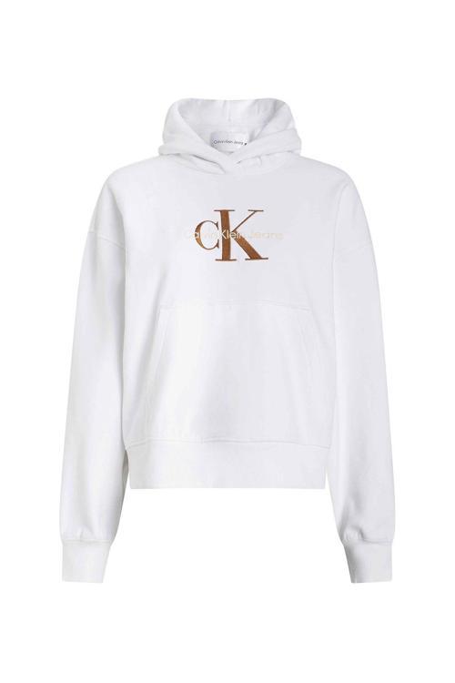 J20J221953YAF, Calvin Klein Jeans markasına ait beyaz renkli kadın kapüşonlu sweatshirt modelidir.