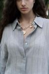 Calynn Sırt Dekolteli Çizgili Vizon Keten Gömlek