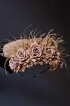 Papatya Silver Cam Boncuklu Somon Güllü Tüylü Prenses Gelin Kına Tacı