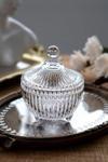Çizgili cam tasarımıyla şık sofraların vazgeçilmezi olan 50 ml şekerlik, küçük boyutuyla pratik kullanım sunar.