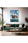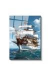 Cam Dikey Duvar Tablosu Cam Beyaz Yelkenli Gemi Ev Ofis Salon Modern Duvar Tablosu