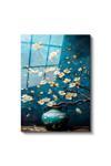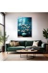 Cam Dikey Duvar Tablosu Cam Mavi Vazodaki Çiçekler Ev Ofis Salon Modern Duvar Tablosu