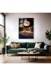 Tablosan Soyut Tekne Ve Dalgalı Deniz Manzara Çerçeveli Cam Tablo 20x30 cm - Image 1
