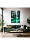 Cam Dikey Duvar Tablosu Cam Yeşil Geçit Ev Ofis Salon Modern Duvar Tablosu