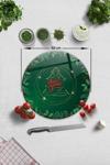 Decorita Cam Kesme Tahtası - Cam Kesme Tablası | Happy New Year - Yeşil | Çap32cm