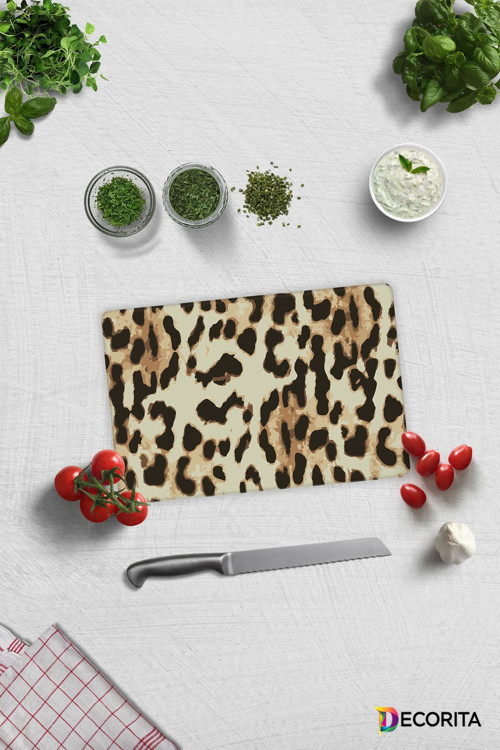 Decorita Cam Kesme Tahtası - Cam Kesme Tablası | Leopar Desen | 20cm x 30cm