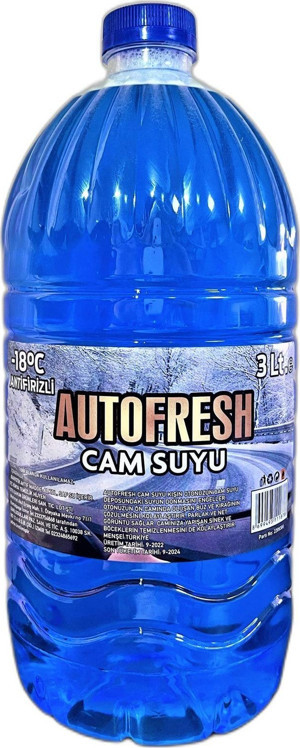 Auto Fresh Oto Araç Cam Suyu 3 Lt -18 Antifirizli Araba Cam Temizleyici Antifriz Kışlık Kullanım