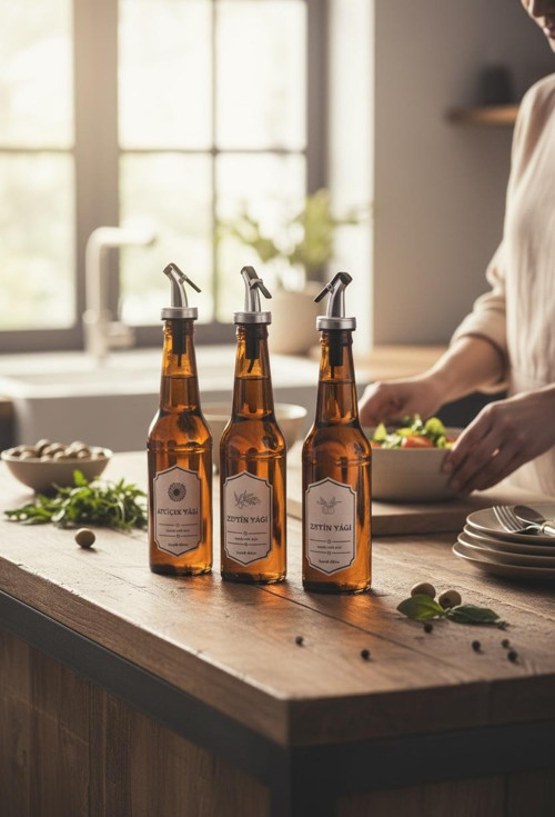 Damlatmaz Kapak 3'lü Zeytinyağı Sıvıyağ Sirke Şişesi Yağdanlık Paket İçeriği, 3 Adet 350 Ml Damlatmaz Yağlık