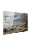 Cam Yatay Duvar Tablosu Cam Dalgali Deniz Manzarası Ev Ofis Salon Modern Duvar Tablosu
