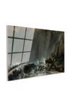Cam Yatay Duvar Tablosu Cam Firtinali Deniz Ev Ofis Salon Modern Duvar Tablosu