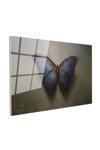 Artarilion Cam Yatay Duvar Tablosu Cam Mavi Siyah Kelebek Ev Ofis Salon Modern Duvar Tablosu