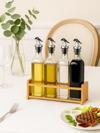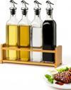 Mavi Trend Cam Zeytinyağı ve Sirke Şişesi Seti Doğa Ahşap Tutucu 250ml Sızdırmaz Kapaklı Sos Yağdanlık Set Standlı 4'lü Set