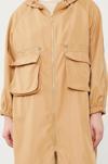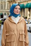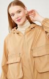 Camel Kapüşonlu Fermuar Kapama Trençkot
