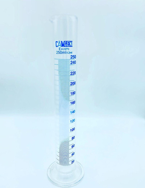 MEZÜR UZUN FORM A KALİTE BOROSİLİKAT 250 ML Bu laboratuvar mezürü, kaliteli borosilikat cam malzemesinden üretilmiştir ve 250 mL hacim kapasitesiyle laboratuvarlar için ideal bir hacim ölçüm aracıdır.