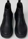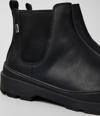 Siyah deri erkek yarım bot, HYDROSHIELD® membranlı, EVA orta tabanlı, OrthoLite® Geri Dönüştürülmüş™ ayak tabanlı ve Michelin kauçuk tabanlıdır (%27 doğal).