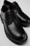 Siyah deri kadın bağcıklı ayakkabılar, OrthoLite® Recycled™ tabanlı ve XL EXTRALIGHT® EVA tabanlıdır.