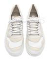 Beyaz ve krem renklerde kadın spor ayakkabısı. Özel deri ve tekstil.