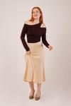 Çan Kesim Midi Krem Saten Etek