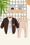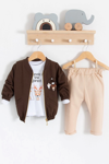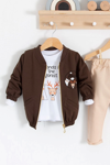 3-6-9-12-18 Ay Erkek Bebek Takımı Forest Hırkalı 3'lü %100 Pamuk Kahverengi