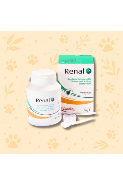 Renal P, kedi ve köpeklerin günlük beslenme rutinine ek olarak kullanılan, kalsiyum tuzları, sodyum bikarbonat ve kitosan içeren toz formda takviye edici yemdir.