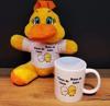 Oyuncak civciv ve baskılı bardak üzerindeki baskı sevdiğiniz kişiye ve kişilere hediye verebileceğiniz anlamlı ve sevimli hediye setlerinden.