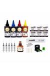 Asyaink ten Kartuş dolum seti: Uyumlu Modeller ; Canon MG2250 MG2450 MG2455 MG2555 yazıcı Kartuş Serileri ile uyumlu. Kartuş Dolum Setimizin içeriği ; 1 Adet 100 ml Asyaink / Siyah Mürekkep 1 Adet 100 ml Asyaink / Mavi Mürekkep 1 Adet 100 ml Asyaink / Kırmızı Mürekkep 1 Adet 100 ml Asyaink / Sarı Mürekkep 1 Adet Vakum Aparatı (Kartuş tıkandığında , kuruma yaptığında , hava olduğunda kullanılır.Olmazsa olmaz üründür) 1 Adet Kartuş Temizleme Spreyi (Kartuş kurumalarında , tıkanmalarında uç kısmına püskürtülür , beklenir. Sonra mendil ile silinir) 4 Adet Enjektör/şiringa (Dolum için şiringa) 1 Adet Uygulama için Sıvı Geçirmez Masa Örtüsü (Lamineli 50x50 ebatında lamineli kağıt masa örtüsü) 6 Adet Kartuş Etiketi (Kopmaz , ıslanınca dağılmaz. Standart düz kağıt değildir.) Kartuş Dolumu yaparken zamanla üstteki etiketler yapışma özelliğini kaybeder. 1 Çift Kartuş Uygulama Eldiveni (Eldiven mutlaka kullanınız. Elimize bulaşan mürekkep 2-3 gün boyunca çıkmaz, canımız sıkılmasın :) 1 Adet Kullanım Kılavuzu (Genel amaçlı kılavuzdur. Kartuş dolumu sırasında yardımcı olabilir. Ancak en etkili öğretici,video dur.Videolarımız ilgili kanalda mevcuttur) Asyaink Mürekkepleri Türk Patent ve Marka Kurumundan Marka Tescillidir. Mürekkeplerimiz ile kendi kartuşunuzu evde kolayca dolum yapabilirsiniz. Çoğu kişiler Kartuş Dolumunun zor olduğunu düşünür , oysa ki oldukça basittir.Piyasada ki dolum firmaları dahi bu şekilde dolum yapmaktadırlar. Asyaink Kartuş Dolum Seti ile birlikte gelen mürekkep ve yardımcı bol ekipman ile zahmetsizce dolum yapıp ettiğiniz tasarrufa çok şaşıracaksınız. Ürün resminde ki ürünler gönderilir. Kısaca aşağıda tek tek olarak belirtilmiştir. Karşılarına ürünlerin ne olduğu açıklanmıştır.