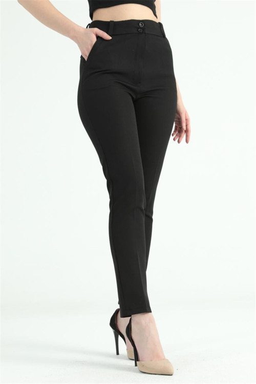 Canseven 1019 Siyah Kadın Yüksek Bel Kalem Kesim Uzun Boy Cigarette Kumaş Pantolon