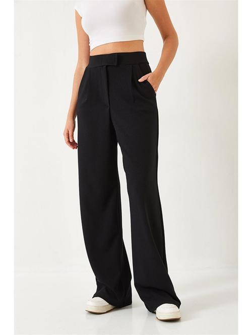 Canseven K26 1052 Sıyah Kadın Yuksek Bel Lıkralı Skuba Kumas Cırtlı Palazzo Pantolon