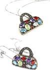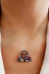 Çanta figürlü gümüş granat aquamarin sitrin ametis taş detaylı kolye