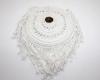 Beyaz örgü malzeme kullanılarak üretilmiş olup, püsküllü detaylar çantaya modern ve şık bir görünüm kazandırır. Hem günlük kullanım hem de özel günlerde tercih edilebilecek mükemmel bir aksesuar olup, aynı zamanda dekoratif özelliği ile de dikkat çeker.