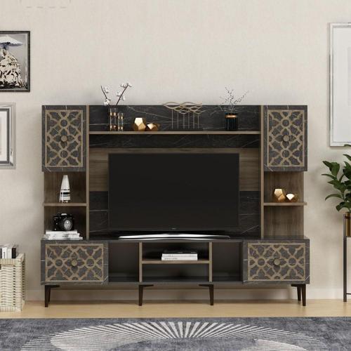 ALEYNA TV ÜNİTESİ Kapaklı bölümü eşyalarınız için saklama alanı oluşturmaktadır. Kapaklar üzerine uygulanan lazer desen işlemi ürüne şıklık katmaktadır.