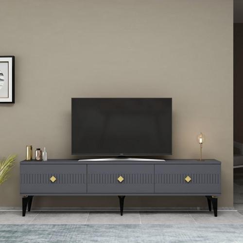 Mezza 1581 Exxen 180 Cm (AHŞAP AYAKLI) Tv Ünitesi Hat - Antrasit